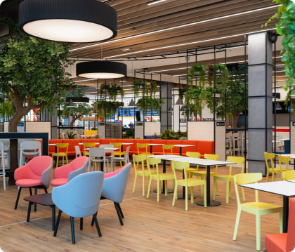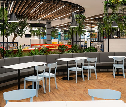 Nachází se v 2. patře naproti kinu Cinestar, s přímým vstupem na venkovní parkoviště.